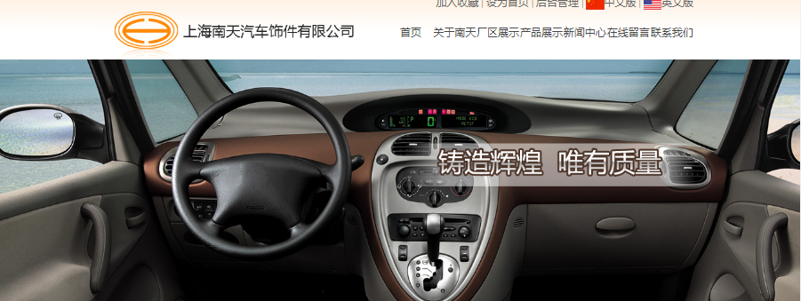 关于上海南天汽车饰件有限公司简介:上海南天是专业生产汽车内饰件的工厂,公司位于青浦区赵屯镇,离开上海大众安亭生产基地仅有15分钟的车程。 上海南天主要的生产工艺是注塑,水转印,喷漆,IMD模内装饰,真皮包覆等,公司通过TS16949质量体系。